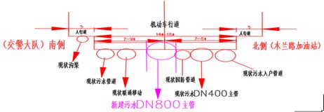 2.此次污水管设计位置断面图如下: