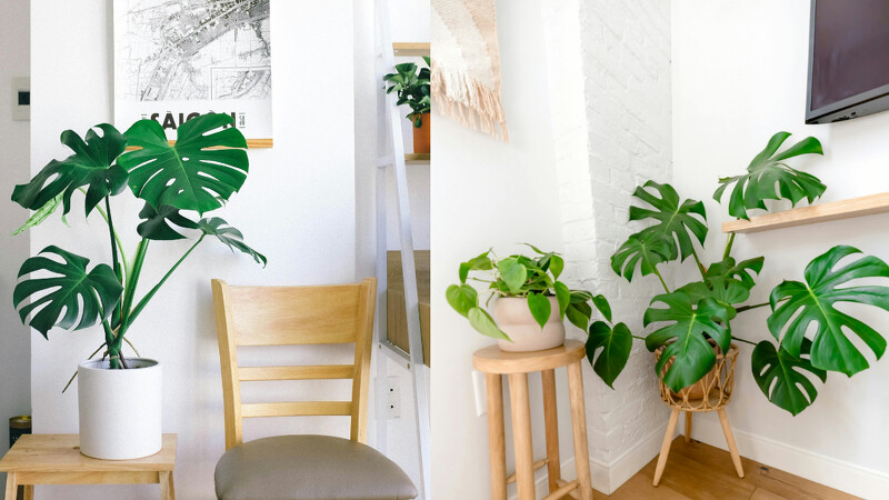 龟背芋:龟背芋以叶形宽大着称,有助于增添居家的大气感,并象徵生机与成长。龟背芋适应性强,定期浇水、保持土壤湿润即可,是很容易养护的植物。