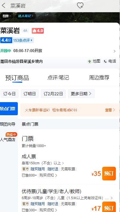 1. "官方渠道": - 访问莆田菜溪岩景区的官方网站,查看门票信息并进行在线购票。 - 关注莆田菜溪岩景区的官方微信公众号,通常会有门票优惠信息。