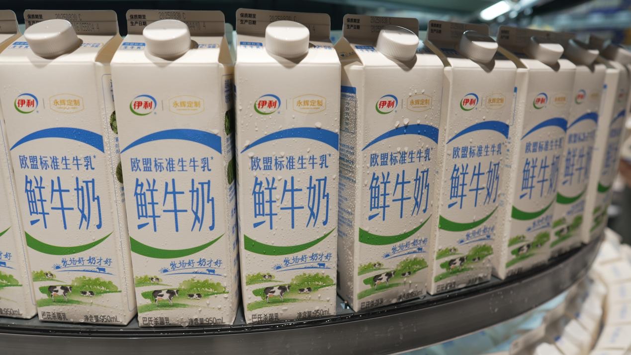 在品质升级方面,门店专门设立了胖东来自有品牌专区,集中展示DL精酿啤酒、DL燕麦片、DL复合果汁、DL自由爱白酒等爆火单品;同步打造永辉自有品牌矩阵,涵盖洗衣液、黑松露饼干等生活刚需品。尤其亮眼的是永辉与伊利独家定制的鲜牛奶,凭借欧盟标准生牛乳原料与7.9的亲民定价,精准满足家庭日常消费场景。